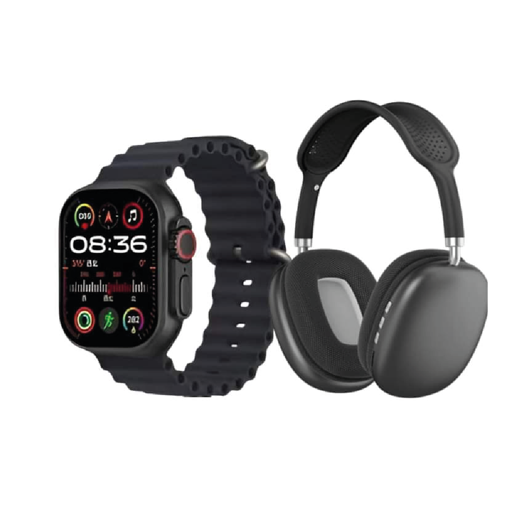 Experience the ultimate bundle for fitness enthusiasts and music lovers alike. This unbeatable combo includes a P9 Ultra 2 Smart Watch and a pair of premium wireless headphones.